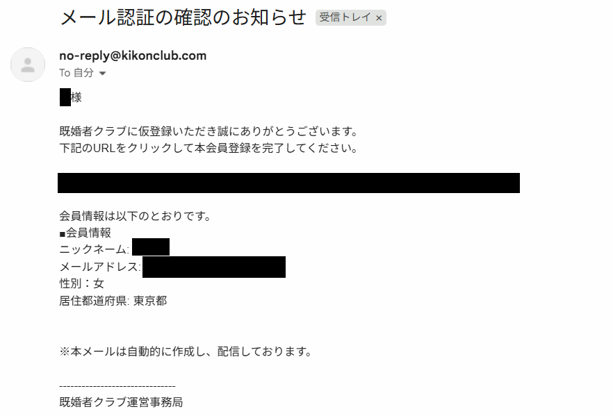 仮登録が終わると、登録したメールアドレスに認証用メールが届きます。メール内のURLを選択して、本会員登録を完了させましょう。